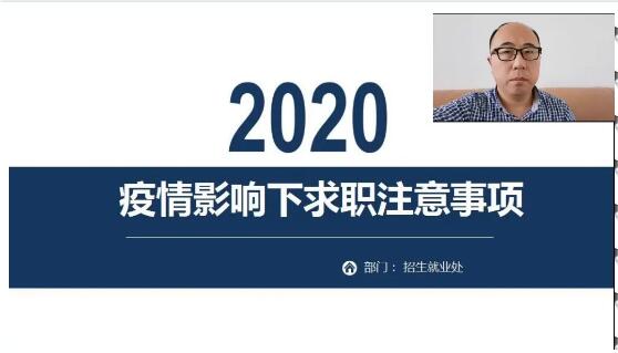 邀请,招生就业处竭岸扬副处长从“认清形势、调整心态、完善自我、掌握资源、主动出击、当机立断、自我保护、终身学习”八个方面向学生们介绍了疫情影响下的求职注意事项,希望毕业生积极就业,同时也要在求职过程中快速成长。