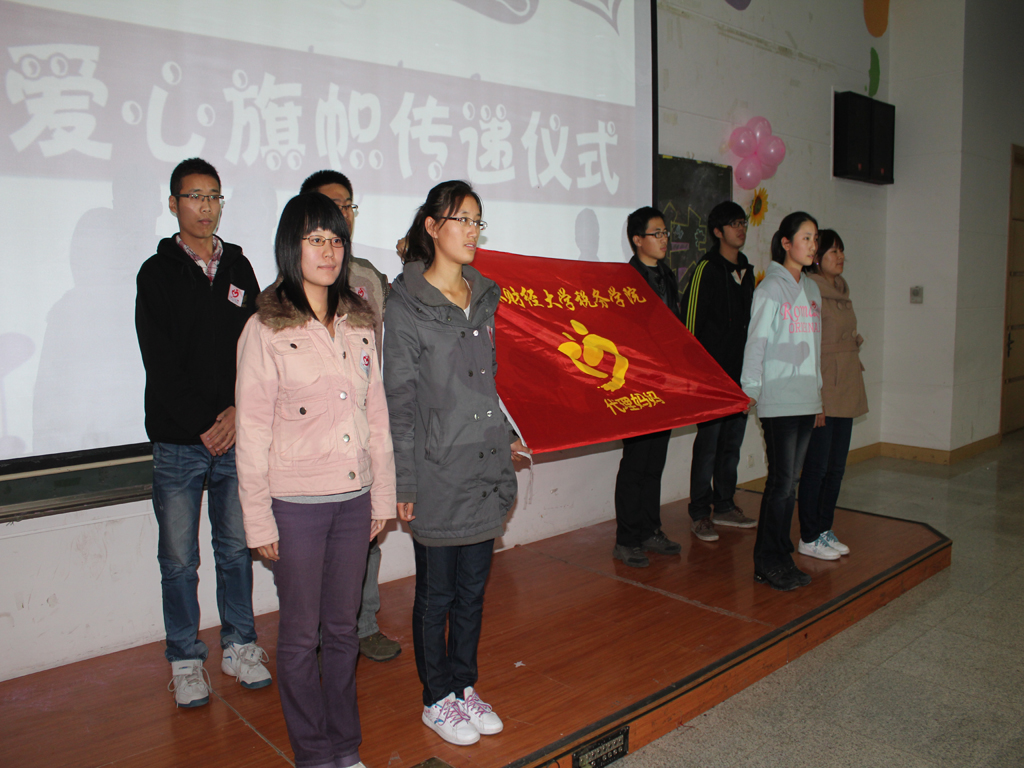 爱心的火炬仍在传递着。接下来,11级“代理妈妈”学生代表从10级学生代表手中接过了“代理妈妈”旗帜并宣誓,11级学生代表杜佳彬同学进行了充满感情的演讲。她朴实的话语、自信的眼神,让大家感受到了她对“代理妈妈”活动的热爱和浓郁的感情。最后,在天健志愿者协会、心语志愿者协会共同表演的手语歌曲中,仪式圆满结束。