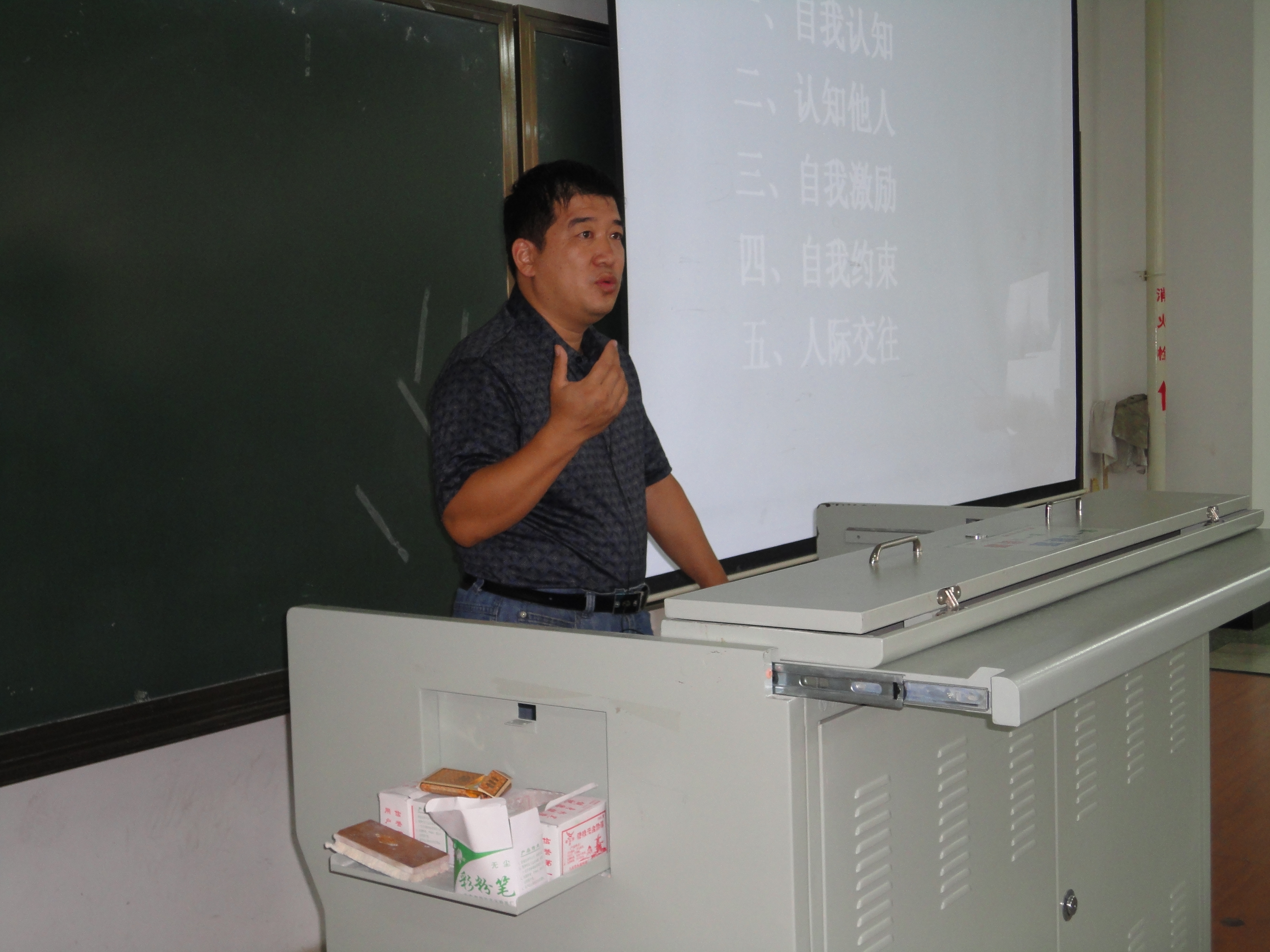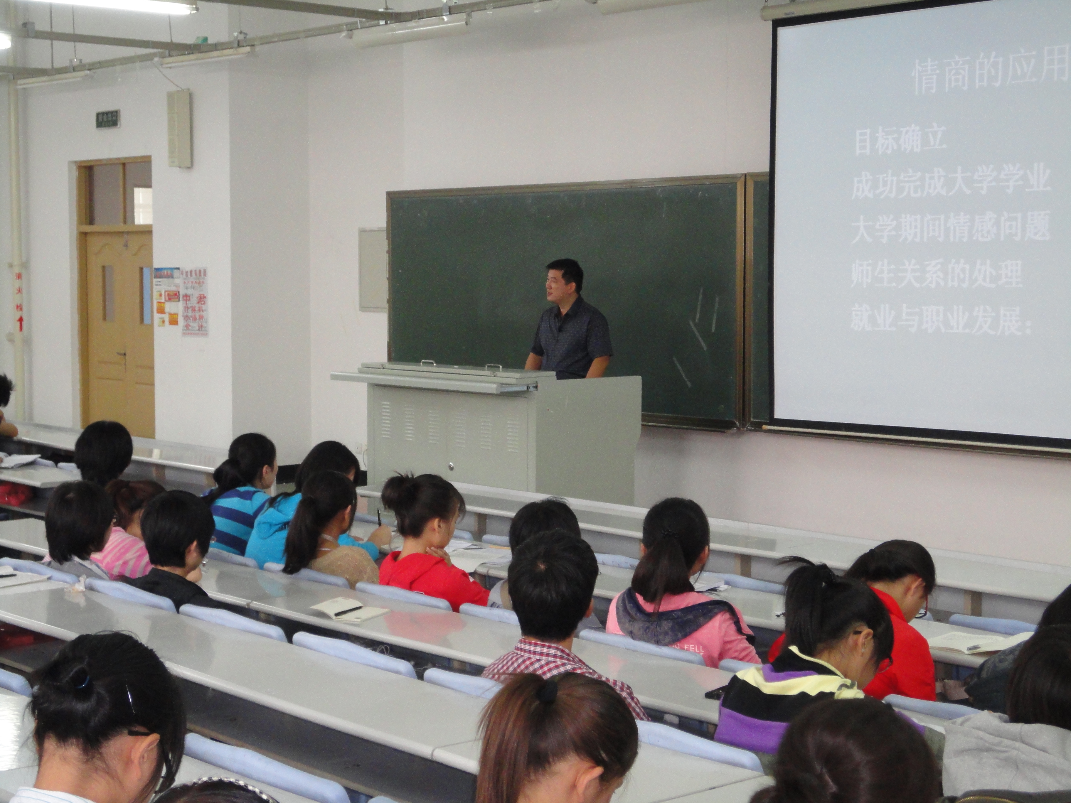 98日下午,由天美传媒 党委书记许峰老师主讲的新生入学教育在教学楼1205教室举行。许峰老师针对大学新生感兴趣的问题作了一一解答,重点就大学生的情商问题作了剖析。分别就自我认知,认知他人,自我激励,自我约束和人际交往五个方面对情商作了阐述,又从目标确立,成功完成大学学业,大学期间的情感问题,师生关系的处理和就业与职业发展对情商的具体运用展开了细致的分析。