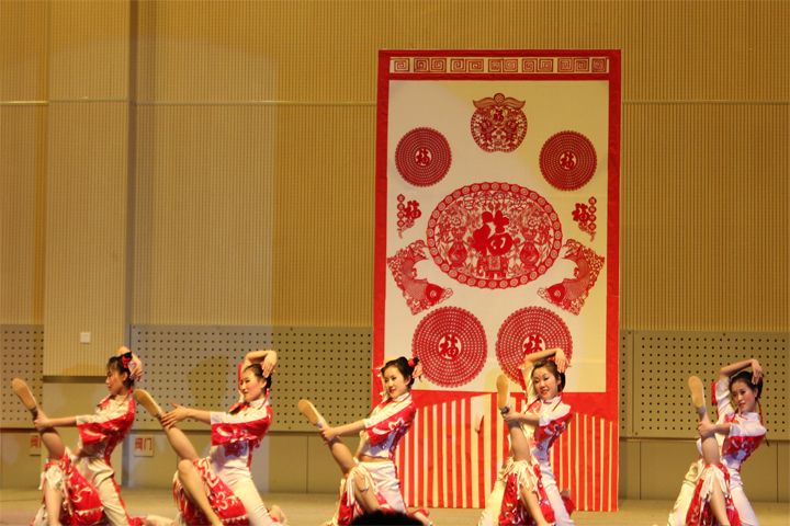 在开场后,我院排演的舞蹈《剪纸姑娘》舞蹈惊艳亮相。她们身着红白相间的传统服饰,随着欢快的音乐不停地变换动作,用灵动的舞姿诠释中国民俗文化中的剪纸艺术。演员们表情生动,动作整齐,一次又一次地演绎高难动作,把完美的舞蹈和丰富的剧情巧妙地结合起来,使得整场舞蹈高潮不断,博得了台下领导及观众热烈的掌声,引起了良好的反响。最后,我院的舞蹈节目获得了本届校园舞蹈大赛民族舞类的三等奖。