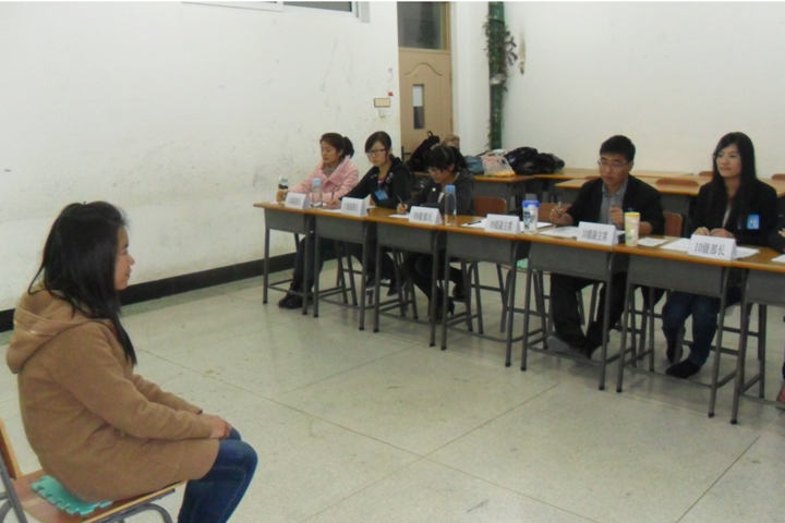 我院2012级学生会纳新面试工作于10月15日在教学楼展开。此次纳新工作持续了三天,分别进行了面试、笔试。纳新主要对12级有意向有信心并且有能力加入学生会各部门的新生进一步了解,并最终确定各部门新成员录取结果。本次纳新工作得到了12级新生的积极响应,每一位同学都做好了充分的准备,以极高的热情前来参加。