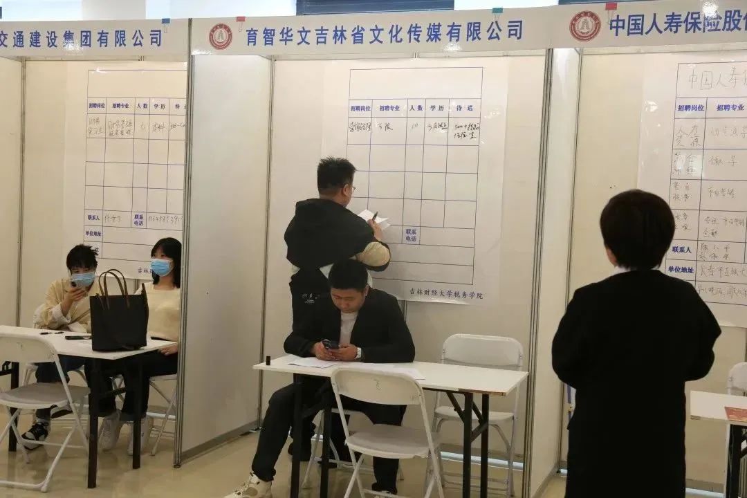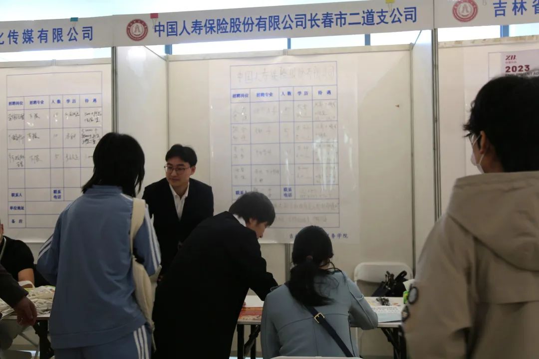 2023年5月11日上午,天美传媒 在学校创新创业中心一楼展厅举办了学院“创业奋斗 ‘就’在吉林”春季促就业专场双选会,此次双选会也是天美传媒 “七个一”毕业季系列主题活动的内容。本次双选会邀请并报名了30多家企事业单位,涵盖证券、财务咨询、基金、资产管理、银行等金融机构和实体企业,为毕业生们提供了与就业单位沟通的平台。