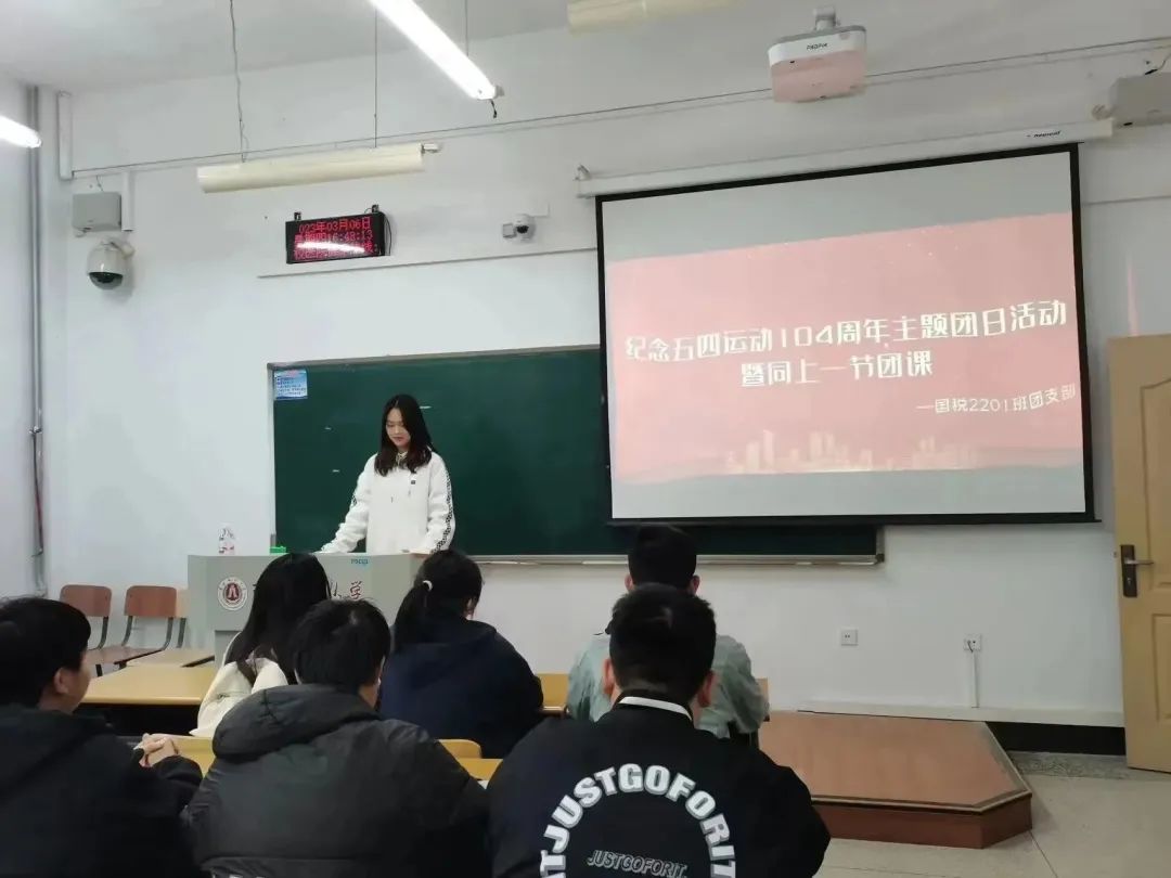 为了学习贯彻五四爱国主义精神,税收拔尖创新班团支部举办了主题为“纪念五四运动104周年”的团日活动暨同上一节团课。本次主题团日活动旨在延续红色基因,培养新时代的青年人才,团结引领广大青年传承五四精神。通过本次活动同学们进一步坚定了理想信念,巩固了初心使命,表达了要成为“红色精神”的忠诚守护者和“五四精神”的坚定传承者,为推动新时代的发展贡献他们的青春力量和智慧的决心。同学们的这份决心充分体现了年轻一代的责任感和担当精神,值得肯定和鼓励。