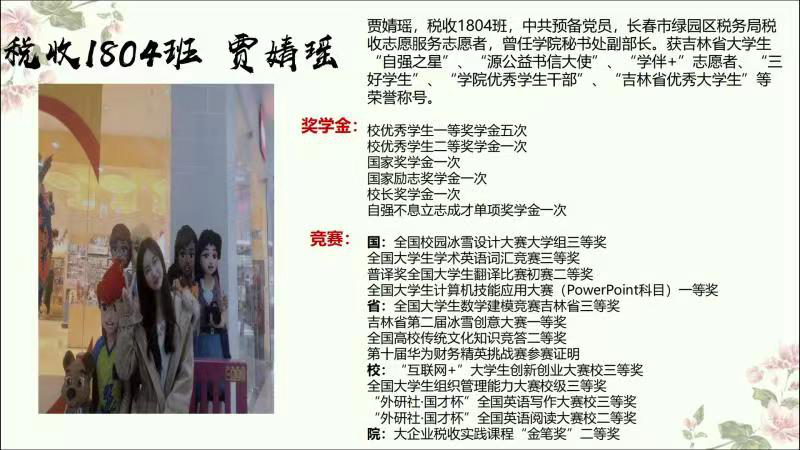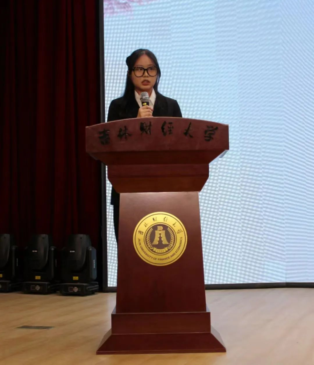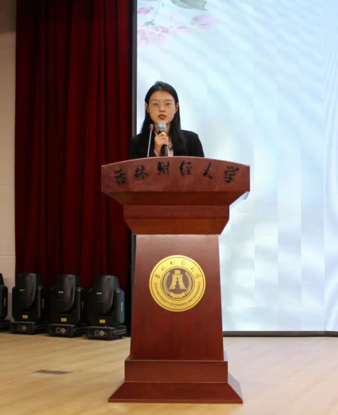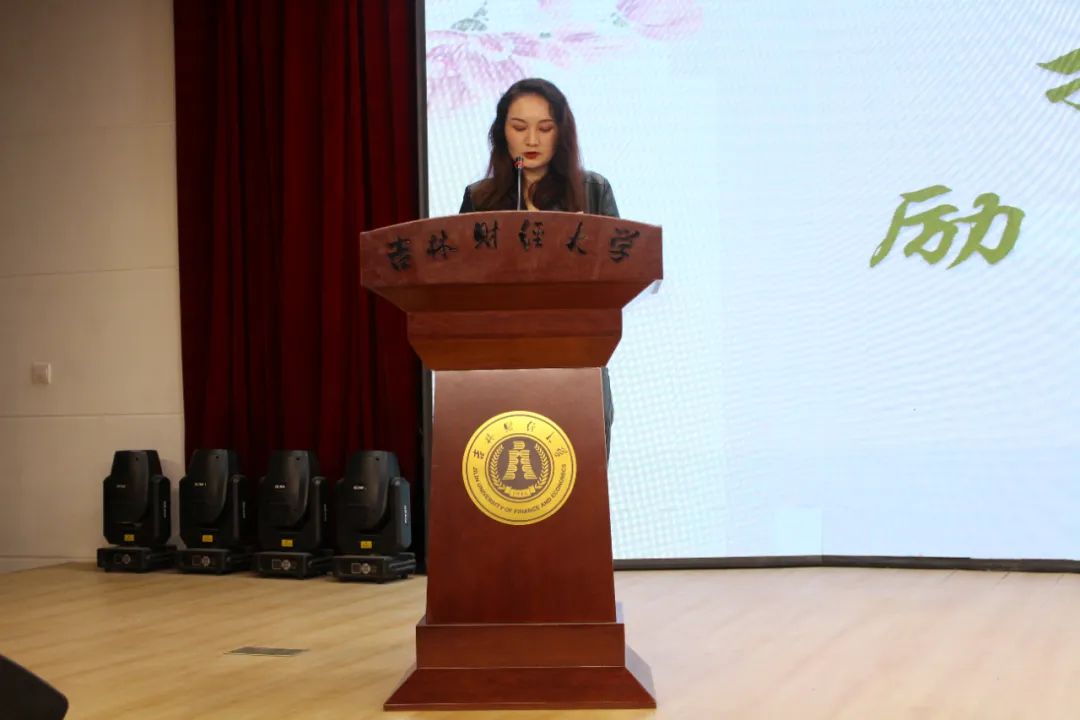 首先,由三位18级优秀毕业生通过线上的方式为我们分享学习生活经验,他们分别是吉林省“优秀大学生”、校“十佳大学生”来自税收1804班的贾婧瑶,目前在兰州大学攻读硕士研究生;财政1884班团支书苏来亚,现就职于国家税务总局鄯善县税务局;现任职于华为财税部门的税收1803班徐祥发。三位优秀毕业生在视频中表达了自己对母校的思念、对老师们的挂念、对校园生活的怀念,同时表达了对母校辛勤培育的感恩之情。为了鼓励学弟学妹们更清楚的了解自己,更正确规划自己的学习生活,为自己以后人生的发展奠定良好的基础,他们通过自己的亲身经历来鼓励在座大学生进一步积极向上、刻苦学习、勤于行动、不惧艰辛、不畏失败,不断扎实自己的专业知识、提高自己的核心竞争力、提升自己的综合能力,激励大家成长成才。