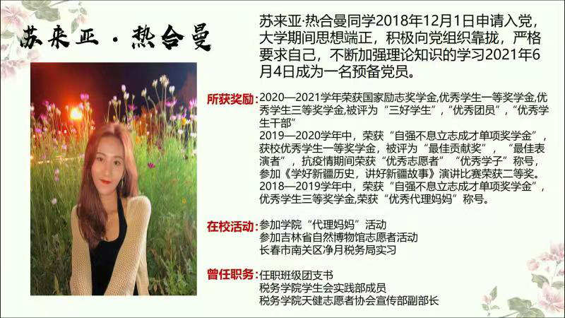 随后努尔妮萨老师对本次活动进行了总结,她谈到我院大一新同学要把握当下每一天,明确自身的人生规划,并提出了三点建议:第一,要虚心学习、勤于行动,从实践中汲取经验积极成长,不断提高自己的精神境界;第二,学会利用好零星的时间,以永不满足的态度去对待学习,用知识填充自己,丰富自己;第三,拓宽信息视野,关注家事国事天下事,提高自己独立思考的能力,做时代的参与者。此外她还指出,读书是提升个人综合能力的快重要途径,由此向同学们发出共同阅读以下10本书的倡议:《习近平与大学生朋友们》、《中国崛起》、《非暴力沟通》、《给青年的十二封信》、《顶天立地谈信仰》、《读书时一辈子的事》、《红色的起点》、《中国震撼》、《白说》、《可复制的领导力》。最后,她希望获奖获助的同学能够发挥模范带头作用,为其他同学提供正确的引领。
