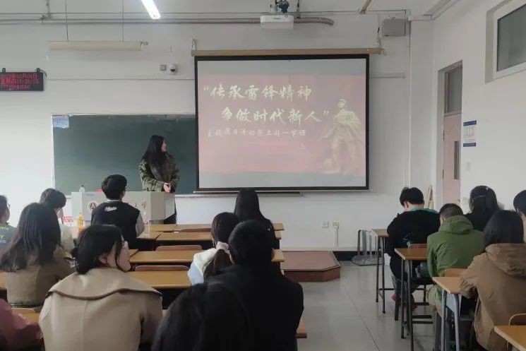 各团支部团支书和班长作为此次活动的领学人,围绕雷锋同志的生平、雷锋经典小故事、雷锋精神的内涵等方面带领同学们学习、了解雷锋事迹。通过文字、视频、电影片段等形式分享雷锋一件件感人的故事。同学们积极参与,交流分享自己心中的雷锋精神和雷锋故事,用自己的语言表达态度,诉说感受。