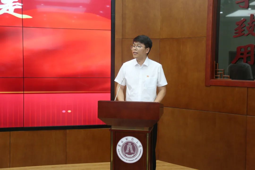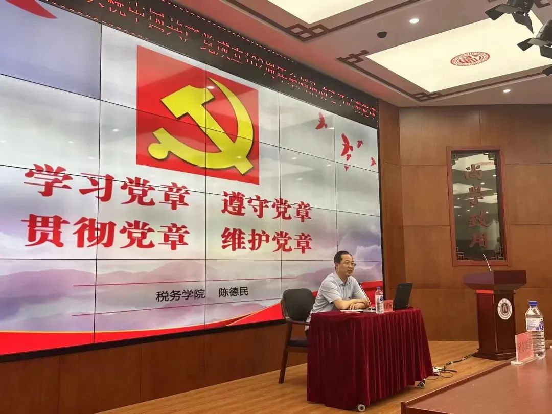 为进一步推进学习贯彻习近平新时代中国特色社会主义思想主题教育走深走实,切切实突出成效,进而提高学院的集体凝聚力和向心力。在学院党委的指导下,税务教工党支部全体党员教师于7月2日开展“凝心聚力谋跨越,奋发有为谱新篇 ”主题教育专题党课暨主题党日活动。此次活动在莲花山进行,以户外研学的形式展开。活动伊始,税务教工党支部书记安然围绕学习习近平新时代中国特色社会主义思想和党的二十大精神为大家讲授主题党课。其后,安然老师组织大家共同研学《党的二十大文件汇编》、《习近平新时代中国特色社会主义思想专题摘编》、《习近平关于调查研究论述摘编》等书目片段,围绕学习内容和活动主题畅谈学习心得体会,交流发言。活动最后,陈德民书记带领全体党员教师一起在党旗下重温入党誓词,进而加强对党员教师的教育,时刻提醒党员同志严格要求自己的工作和生活。