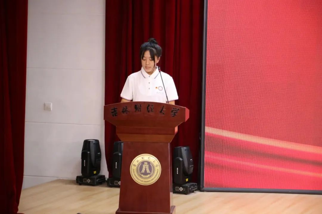 财政2191班李娜同学代表出征队员发言。