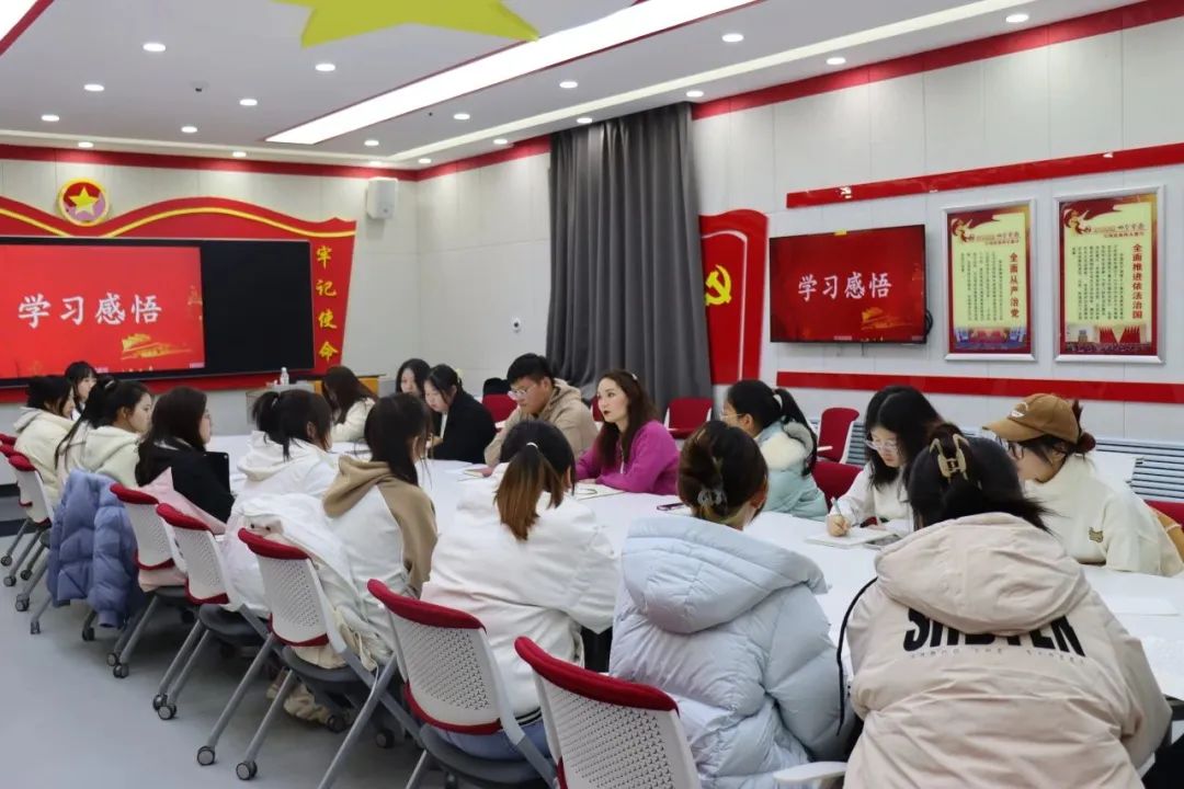 会议集体学习了习近平总书记在中共中央政治局第九次集体学习时强调铸牢中华民族共同体意识推进新时代党的民族工作高质量发展的重要讲话精神。同学们纷纷发表学习感悟并以“民族团结”“铸牢中华民族共同体意识”为主题分享心得,同学们不仅回顾了民族团结事业所取得的辉煌成就和宝贵经验等,而且结合自身事迹讲述身边的民族团结故事。