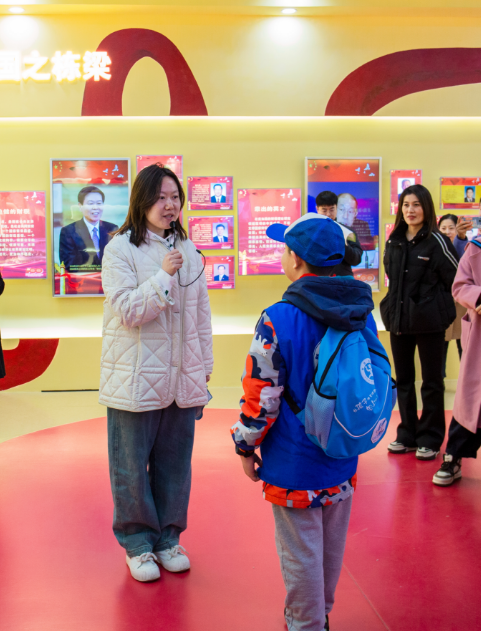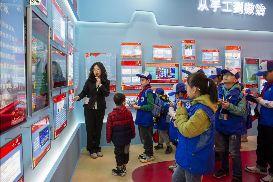 第一阶段跟随讲解员讲解,进行集体参观。按照建党百年为时间轴主线,从“党的领导”“税收发展”“吉林税务”“税务大事件”四个模块进行讲解,给小记者们一定的视听冲击。
