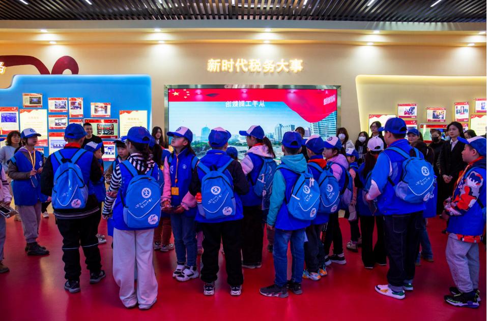 在第33个全国税收宣传月来临之际,为贯彻落实《中共中央国务院关于进一步加强和改进未成年人思想道德建设的若干意见》的精神,深入推进全国中小学生素质教育工作的有效开展。3月31日上午,在大学生志愿者的带领下,二十余名可爱的新华小记者们走进天美传媒 百年财税思想史博物馆开展科普研学活动,感受税收理论与实践的魅力。