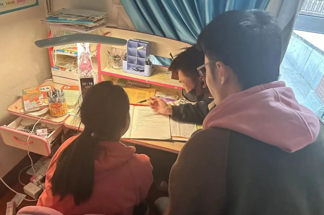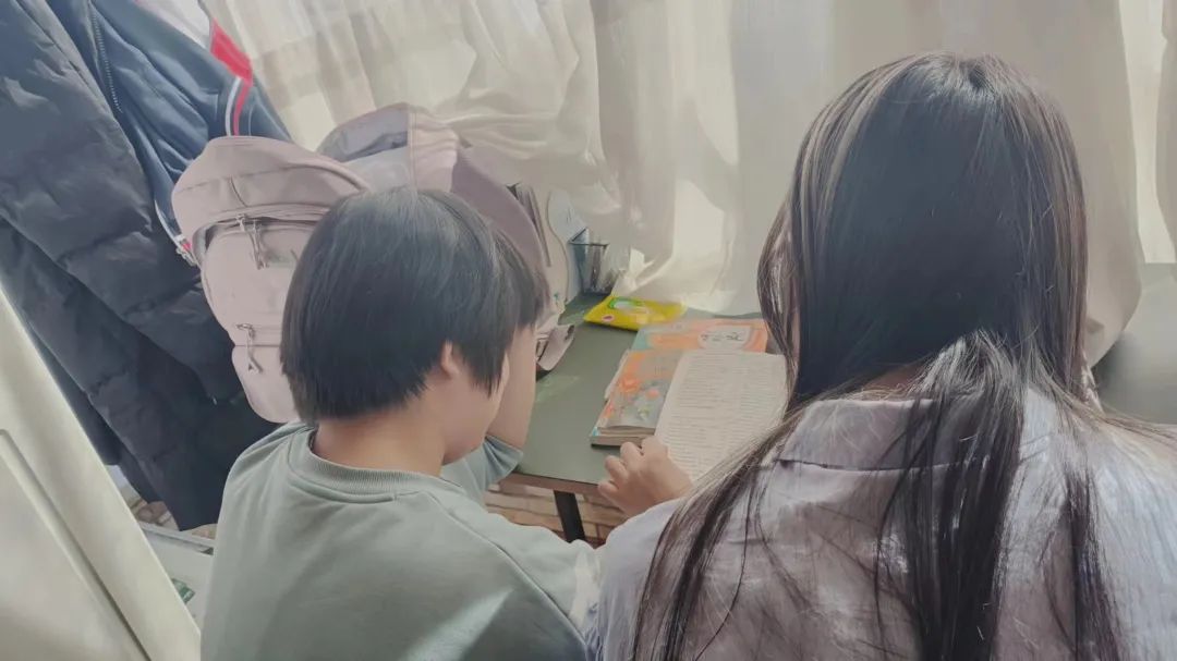 非常开心今天能够参加“代理妈妈”活动,我和同学们来到了天羿小朋友的家里给他补习功课。在来之前我有点紧张,但是看到天羿小朋友脸上露出的笑容,我就不那么紧张了。我们教天羿小朋友语数外三个科目,在我和同学们评讲作业的时候,天羿小朋友听得很认真,遇到不会的题目他也不会轻易放弃,会一直攻克到底。我觉得天羿小朋友这种不轻易放弃的精神也值得我们学习。“代理妈妈”这项活动十分有意义,不仅能够帮助小朋友解答学习上的难题与疑惑,更是对我们的一种锻炼。我们也会将这种爱与温暖继续传递下去!