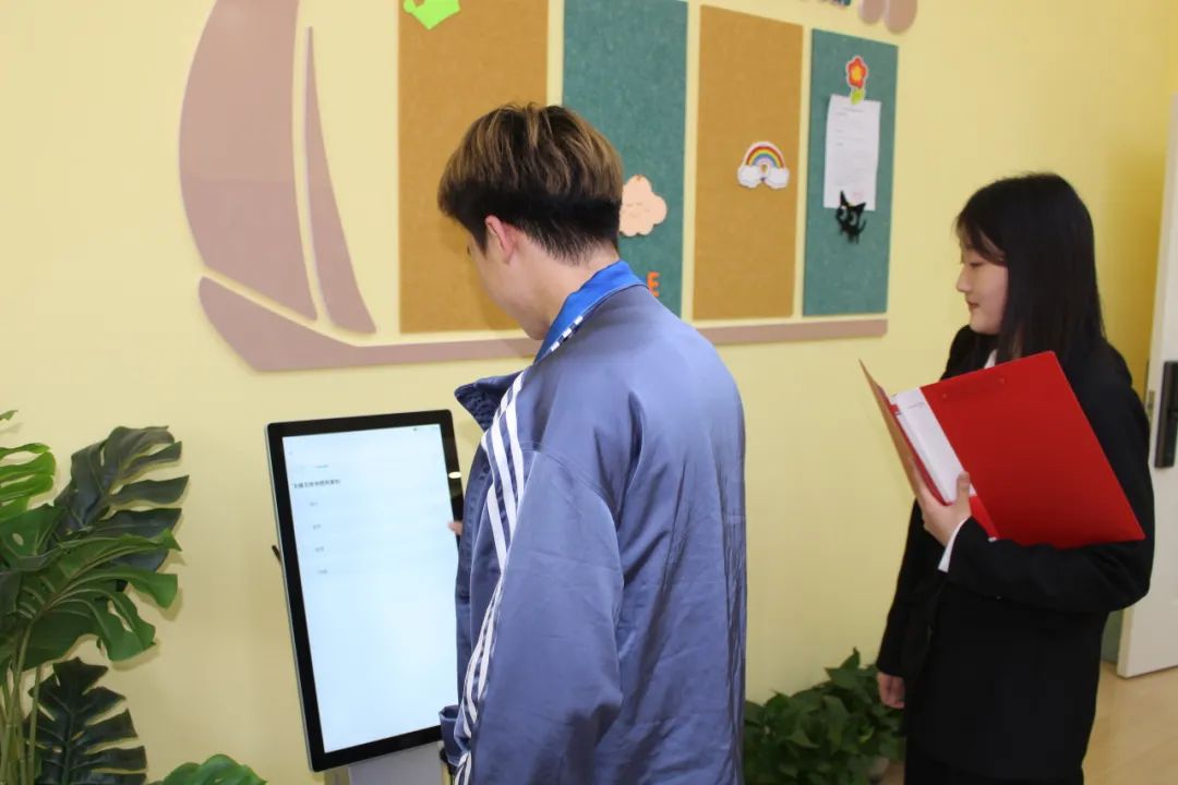 咨询预约等候室设有心理自助成长系统,包含音乐解压、心理自测、预约等模块,帮助同学们学习心理健康知识,并为同学们提供职业兴趣、 人格类型、能力倾向等各类心理测评服务。