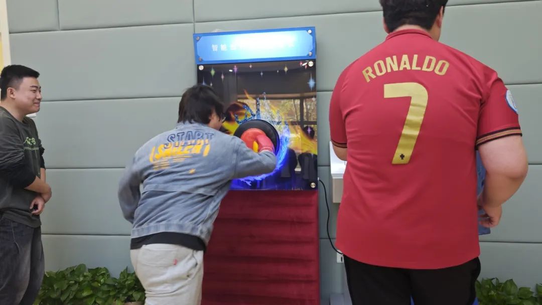 最后,讲解员带领同学们来到了情绪宣泄室,这里是同学们进行情绪宣泄的主要场地,其中包含了智能打击、智能宣泄等设备,来访同学可以将自己的负面情绪通过一种安全的方式发泄出来。在讲解员的带领指导下,同学们通过体验相关设备,参加系列趣味活动,充分释放内心的焦虑。