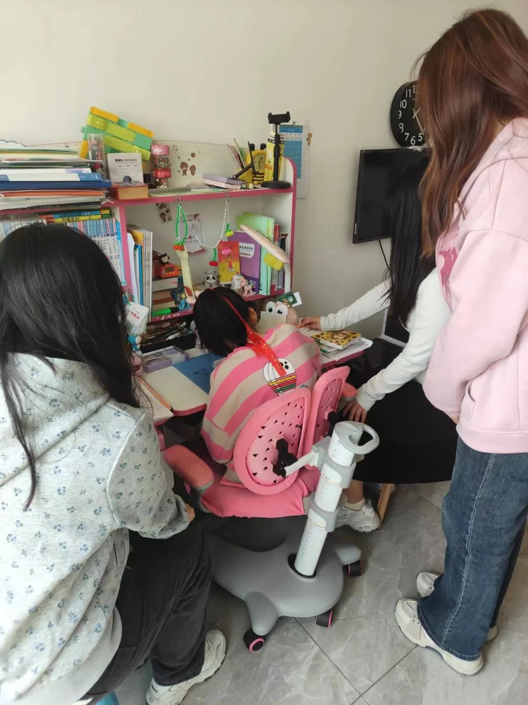 今天我们通过“代理妈妈”活动来到了潘佳琳小朋友家里,我们给她批改了作业,她是一个聪明的小女孩,善于思考,我们也教了她英文月份的单词,小女孩学的很快并背了下来,接着我们又锻炼身体,进行了体育运动。此次活动很充实开心,有很多收获,今后我们也会多多做有意义的事。