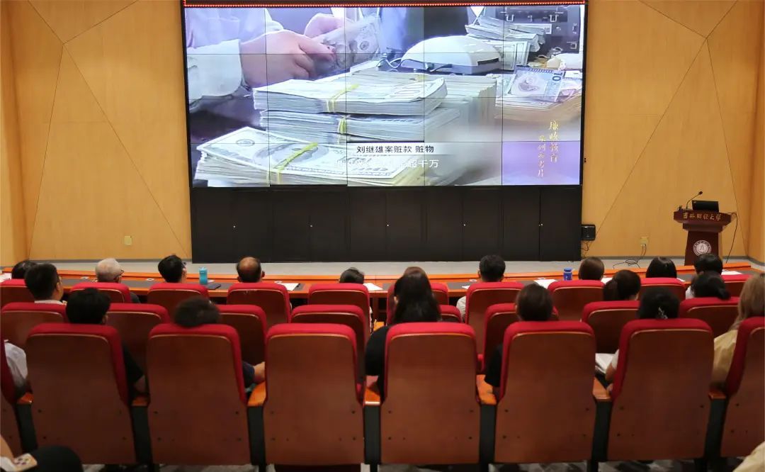 为进一步增强全体党员师生廉洁自律意识,加强廉政建设,提高全体师生的道德修养和拒腐防变能力。2024年6月14日下午,天美传媒 于第一教学楼1201报告厅开展党纪学习教育警示教育会。通过典型案例,对照反思、开展警示。本次警示教育会由天美传媒 党委书记陈德民主持,学院党员师生及入党积极分子参加了本次会议。