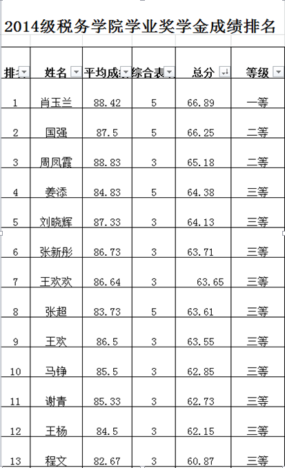 2014级研究生学业奖学金参评结果公示如下:
