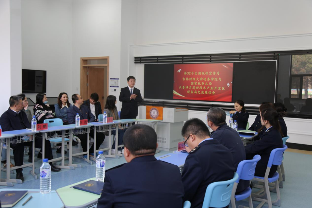 参观之后,学校领导和师生与税务干部围绕税收宣传月主题、教育教学实践、就业创业税收政策、志愿者实习实践活动、毕业生校友建言献策等内容进行了交流座谈。