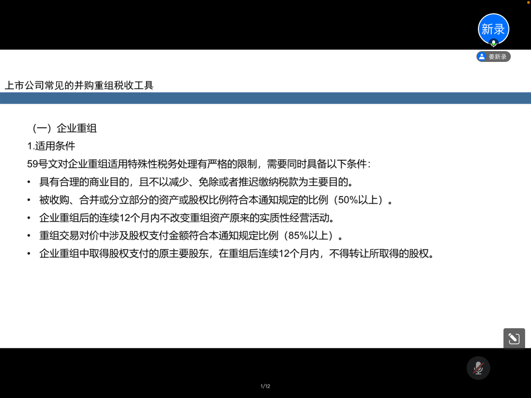 通过本期课程“上市公司并购重组的税务处理实践”的学习,我们充分体会到了上市公司并购重组实操过程中的复杂性,加深了同学们对于实践的理解,同学们也深刻认识到了税务知识与实际操作融会贯通的重要性。