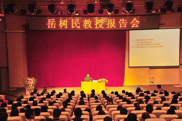 自2004年以来,我国一直在进行结构性减税,结构性减税的核心内容固然是减税,但将“结构性”与“减税”联系在一起,提法相对较新,其背后有特殊含义。岳教授首先为我们全面解释分析了结构性减税政策的内容,让我们在不同的角度理解了这一政策,明确了结构性减税在我国税收政策中的地位。岳教授语言幽默简洁,配合精心准备的幻灯片资料,在场的同学们在很短的时间里就对结构性减税有了系统的了解。紧接着,岳教授讲解了近些年结构性减税的实践经验。在实践过程中,我们要正确理解许多现象和关系,结构性减税与许多国家政策息息相关,正确处理这些关系是实践的重中之重。最后,岳教授为我们解释了现行税制中存在的问题,明确了税制改革的重点,分析了结构性减税的着力点。岳教授用学生最能理解语言阐述了重要而深刻的道理,赢得了在场同学们的热烈的掌声。