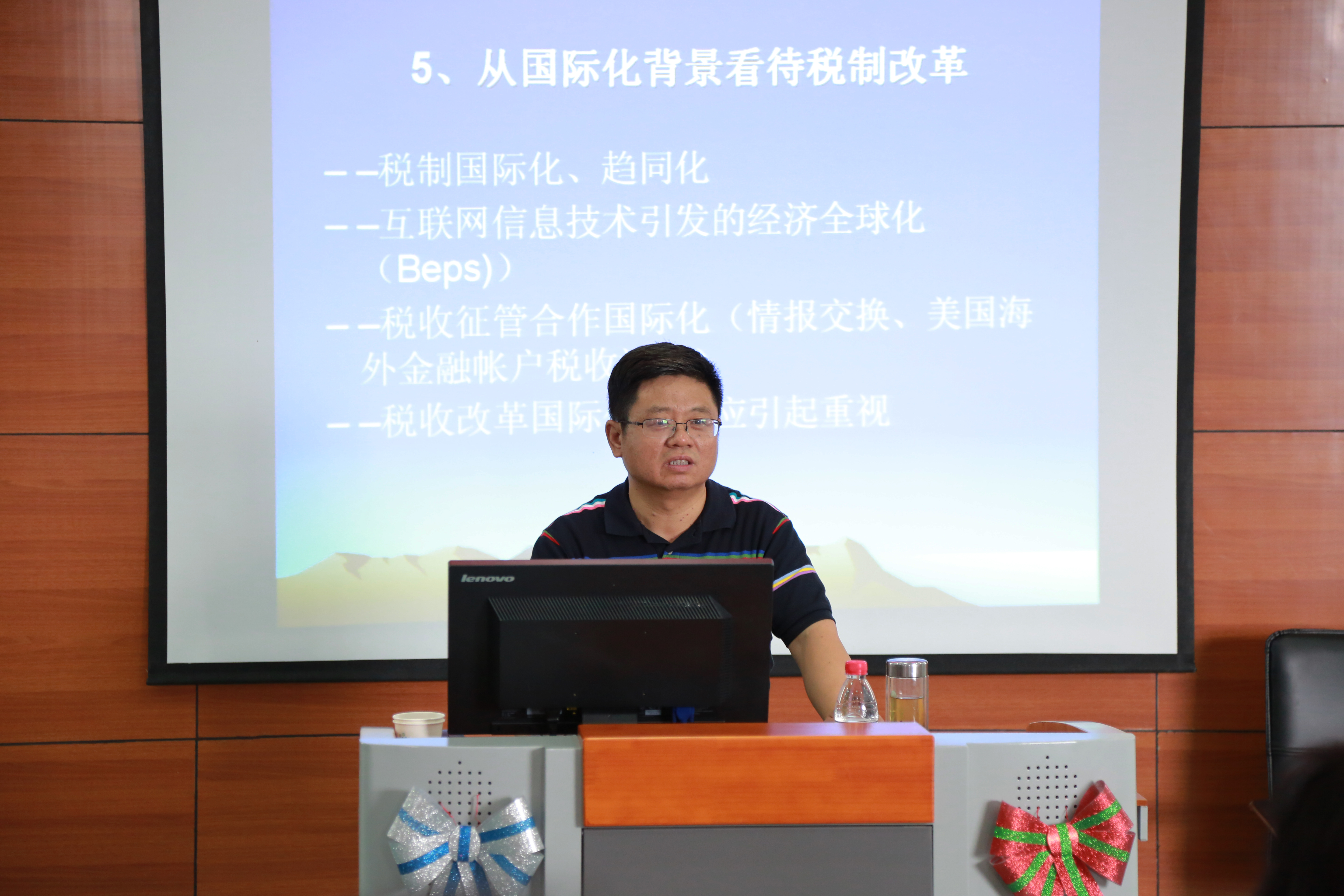 (报道人:王晓佳)6月5日下午2点,应我院的邀请,国家税务总局税收科学研究所所长、中国税收学会理事、中国国际税收研究会理事李万甫教授在逸夫教学楼2403B为我院师生作了一场精彩的报告会。出席此次学术报告会的有天美传媒 副校长杨春梅教授、我院党委书记田磐石、副院长王金霞教授以及部分我院师生。