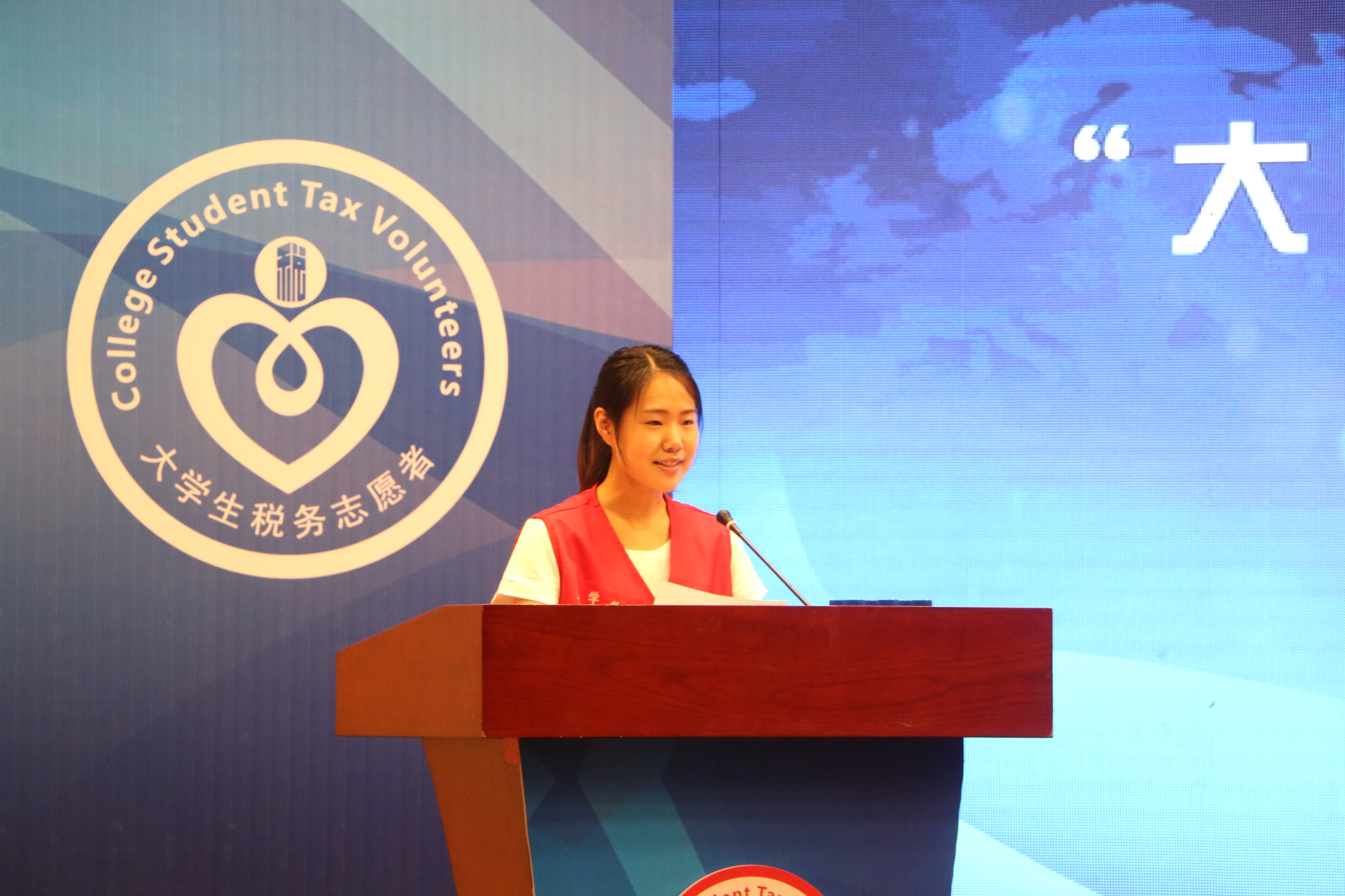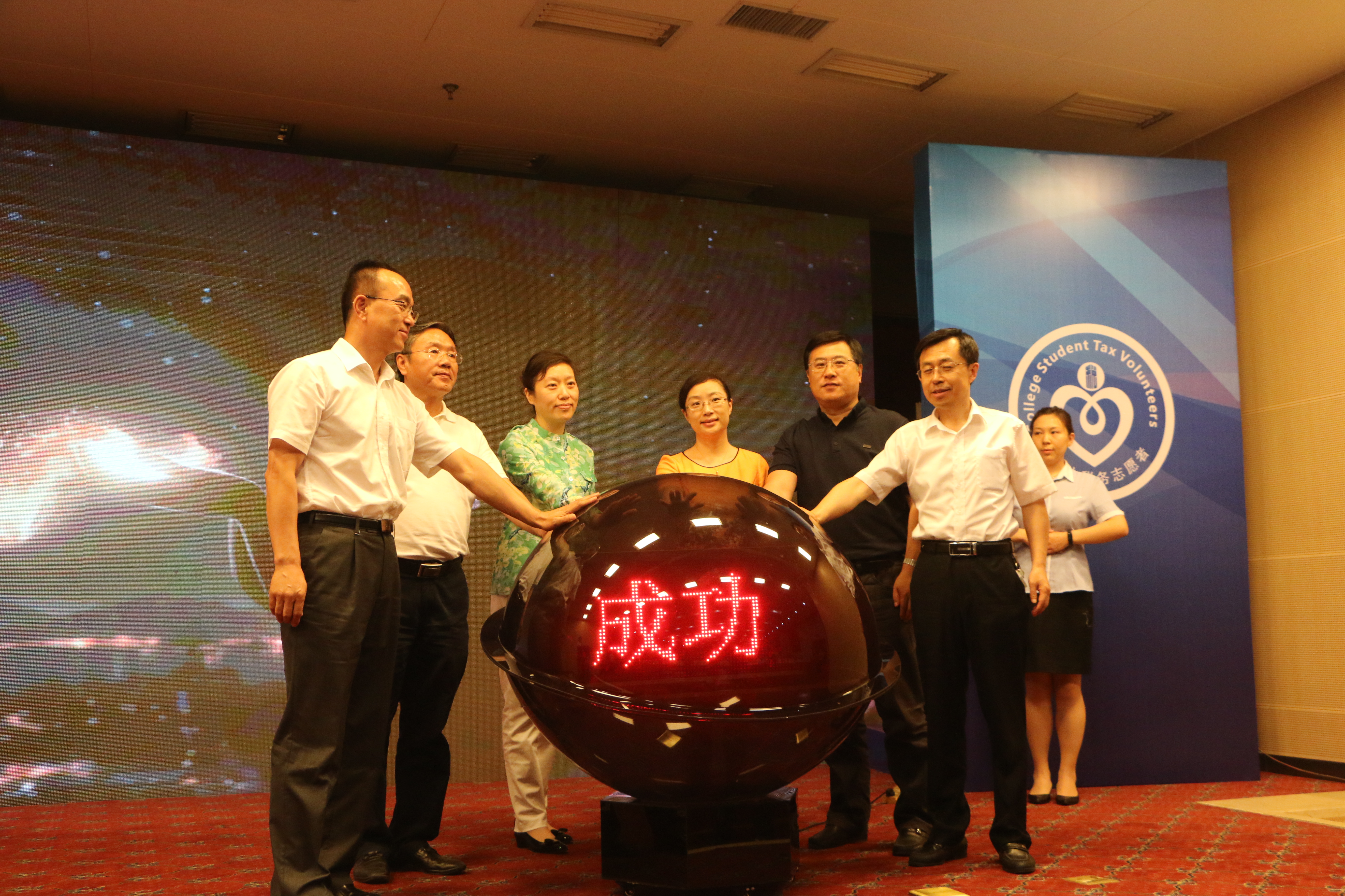 下午2时整,随着国税形象主题宣传片的播放,启动仪式正式开始。首先,主持人对参会领导、嘉宾和大学生志愿者们表示由衷的欢迎。然后,通过“大学生税务志愿者在行动计划”专题片,展示了大学生税务志愿者行动计划助力营改增,对社会、经济发展的促进作用以及工作成效。随后,长春市国家税务局党组织成员、副局长齐志宏发表讲话,一方面,感谢了各部门、高校的大力支持和积极配合;另一方面,对税务志愿者活动寄予了美好的祝福。接着,我院韩旭作为大学生志愿者代表进行发言,全体大学生税务志愿者起立宣誓。最后,国税局领导和校方领导签署合作协议,点亮了启动球。至此,此次启动仪式圆满结束。