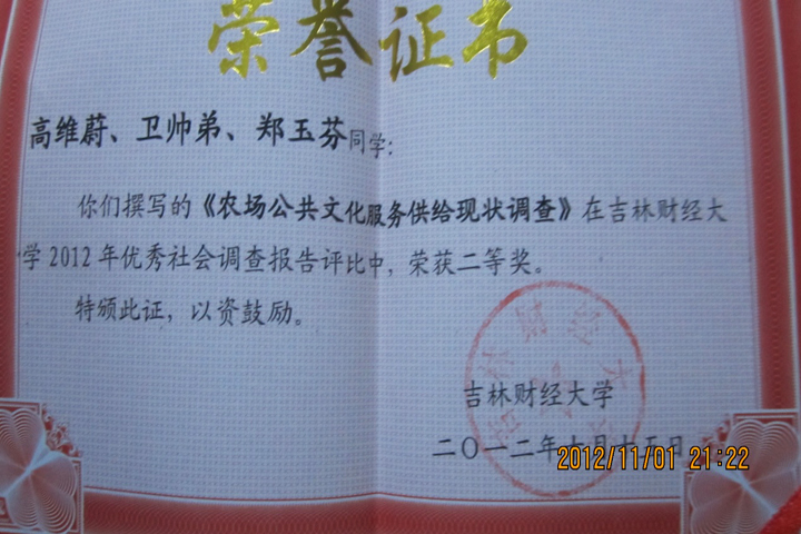 优秀社会调查报告评比大赛中,我院税务实验1001班的高维蔚、卫帅弟和郑玉芬同学获得二等奖。