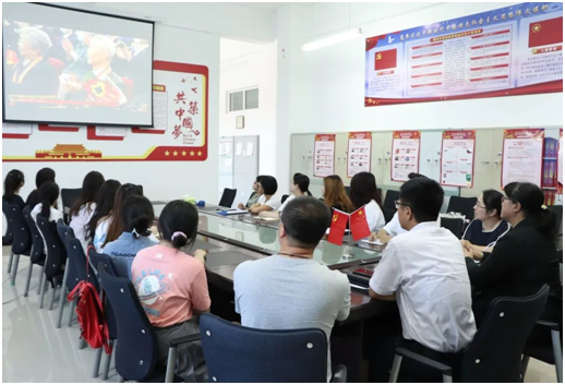 6月29日上午10时,学院在2417会议室举行了党员师生共同观看“七一勋章”颁授仪式直播活动。天美传媒 党委书记赵彦双、副院长马莹、副院长董蕾、党委副书记赵黎光、学院专职组织员侯旭、教师代表黄莹、张馨元、姚懿倍以及最新一期预备党员代表参与观看了此次直播。