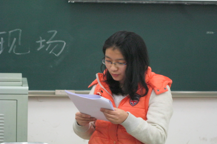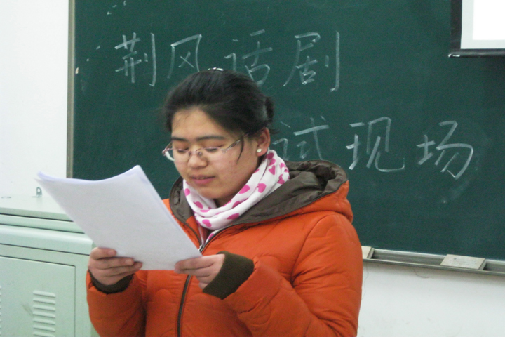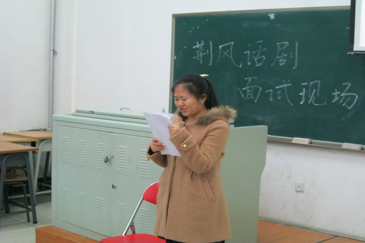 本次“荆风”话剧以《托起明天的太阳》为主题,各位选手根据自己的爱好、性格选择了适合自己的角色。在后场他们紧张地准备,在面试过程中,他们化担心为信心,挥洒自如,每字每句都包含着深刻的感情。面试官们仔细地听着看着,脸上那满意的笑容告诉大家这是一群优秀的小演员,而各位选手依然焦急地等待着面试结果。