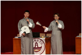 在前半段紧张的比赛结束之后,来到了放松环节,一场精彩的相声表演结束之后,我们迎来了第四个环节“绝处逢生”,三队同时上场,由主持人读题同时PPT显示题目和选项,主持人喊开始后每队代表开始抢答,抢答成功后派一名代表进行作答。