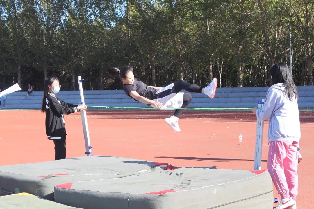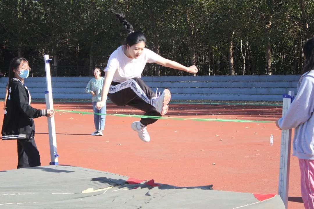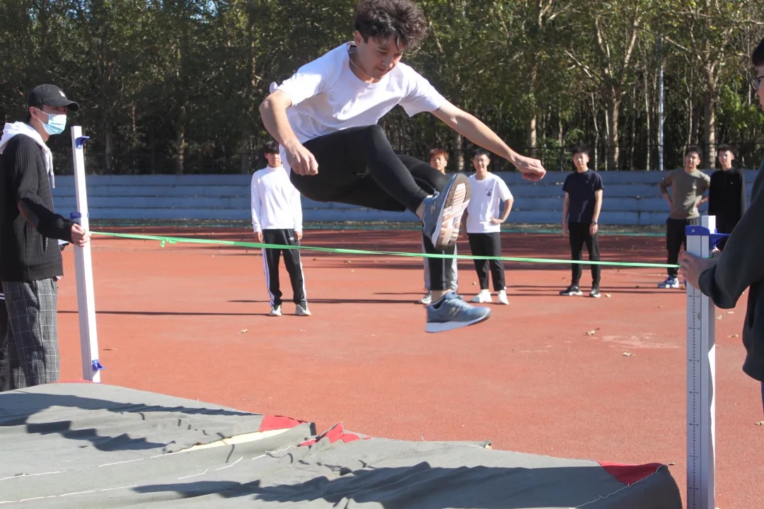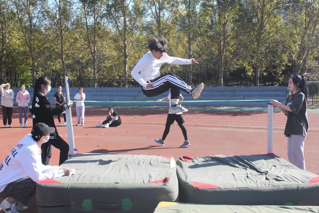 跳高场地上,一回回摔落又起的重新再试,健儿们用永不言败的精神彰显自己的高度,一次又一次挑战着更高的刻度。同学们纵跃的身姿是青春洋溢、蓬勃朝气的真实写照。