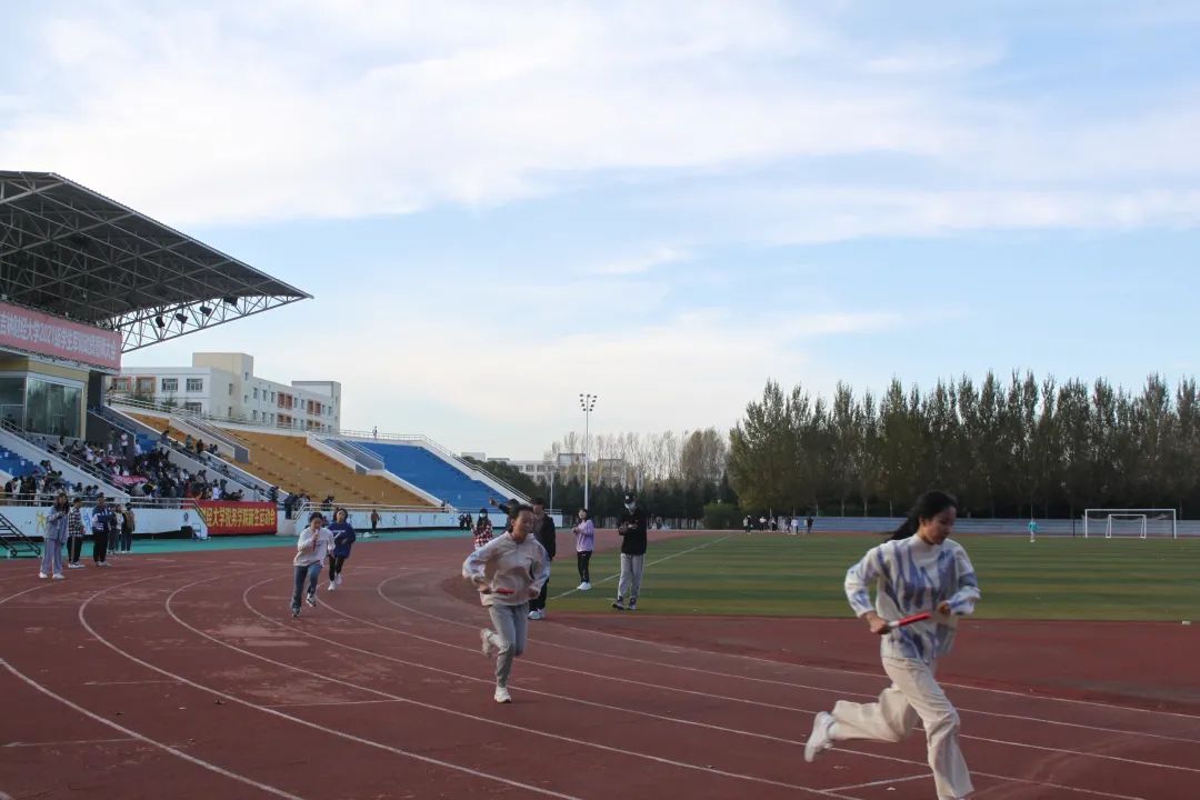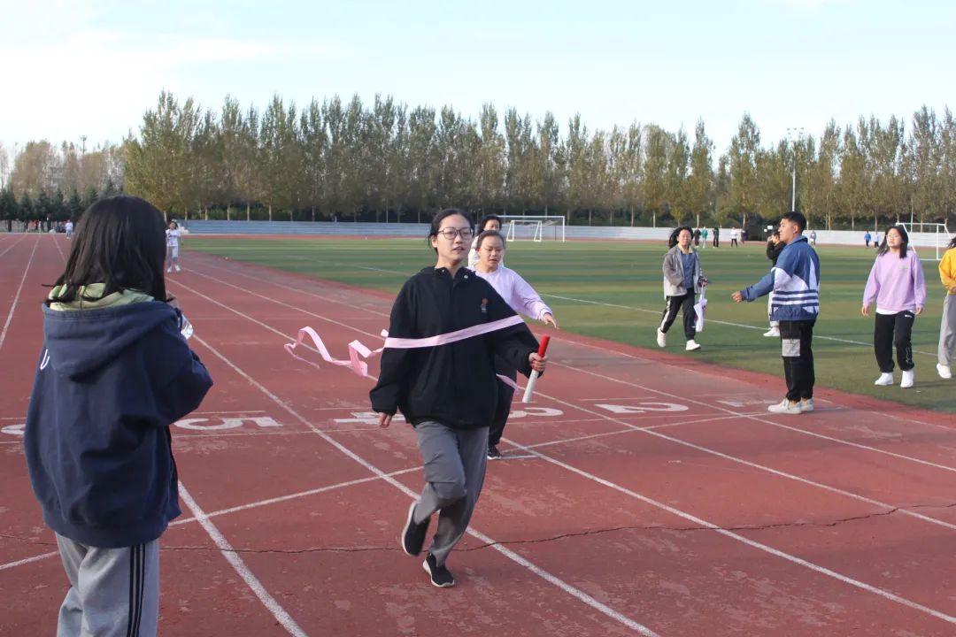 接力,每一次接力棒的传递都是同学们为目标奋斗的象征,传递的不止是一个小小的接力棒,而是新时代学生奋斗的象征和青春的活力,青春就是无论结果都要勇往直前!看台上,人头攒动,人群中时常爆发出欢呼与加油,同学们的呐喊声在田径场上久久回荡,激励运动健儿继续前进。加油、欢呼、汗水、超越,同学们不懈追逐着班级荣耀,绘制出充满活力的青春画卷。