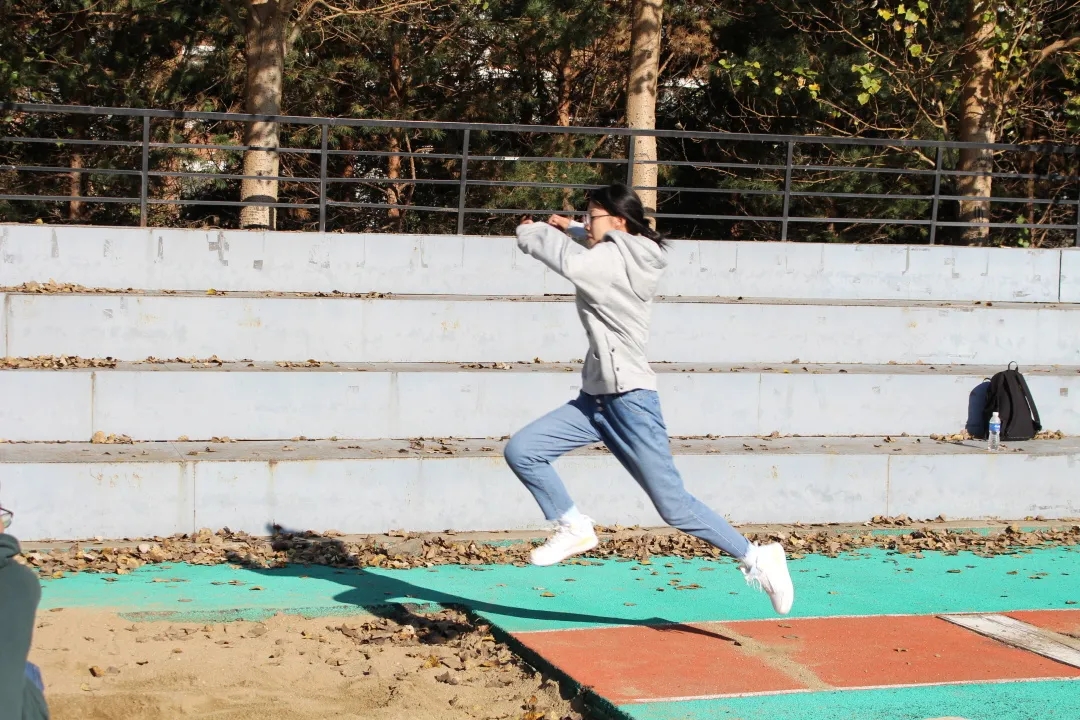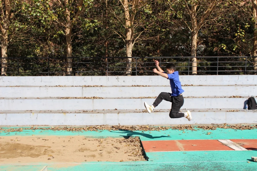 田赛,在田赛项目中,我们看到同学们奋进的脚步和无畏前方的背影,跳远场地上,一次次勇敢果决的腾空跃起,健儿们以最大的加速度跳到更远处。