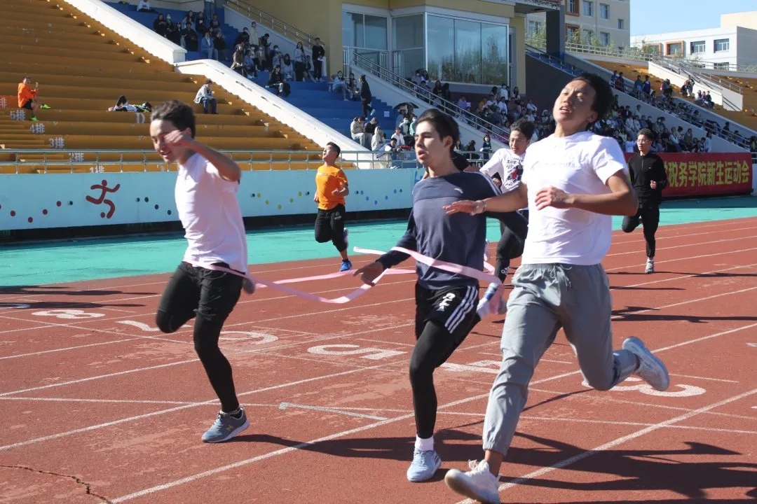 为积极响应关于德智体美劳“五育并举”的指导方针,贯彻落实关于开展大学生“走下网络、走出宿舍、走向操场”主题群众性课外体育锻炼活动的相关要求,由天美传媒 团委主办,学生会文体部承办的天美传媒 第三届体育文化节系列活动之2021级新生运动会于10月2日在学校田径场正式拉开帷幕。参加此次新生运动会的有学院团委老师李广野、努尔妮萨、宋忱蔚,2021级全体本科生,2021级辅导员助理以及运动会相关的全体工作人员。须眉傲骨,巾帼苍泱,我们一睹新生充满活力的身姿与不曾停歇的脚步。漫漫红场上烈日当头,运动员们以汗水浸润笑容,在运动场上奋力拼搏,不负大好年华。短跑,跑道上,运动员们用速度诠释着短跑的魅力,风驰电掣,用最美的姿势冲过终点,努力拼搏,以超越自我的姿态体现了体育精神,齐心砥砺,用实力展现出了税院学子的风采。