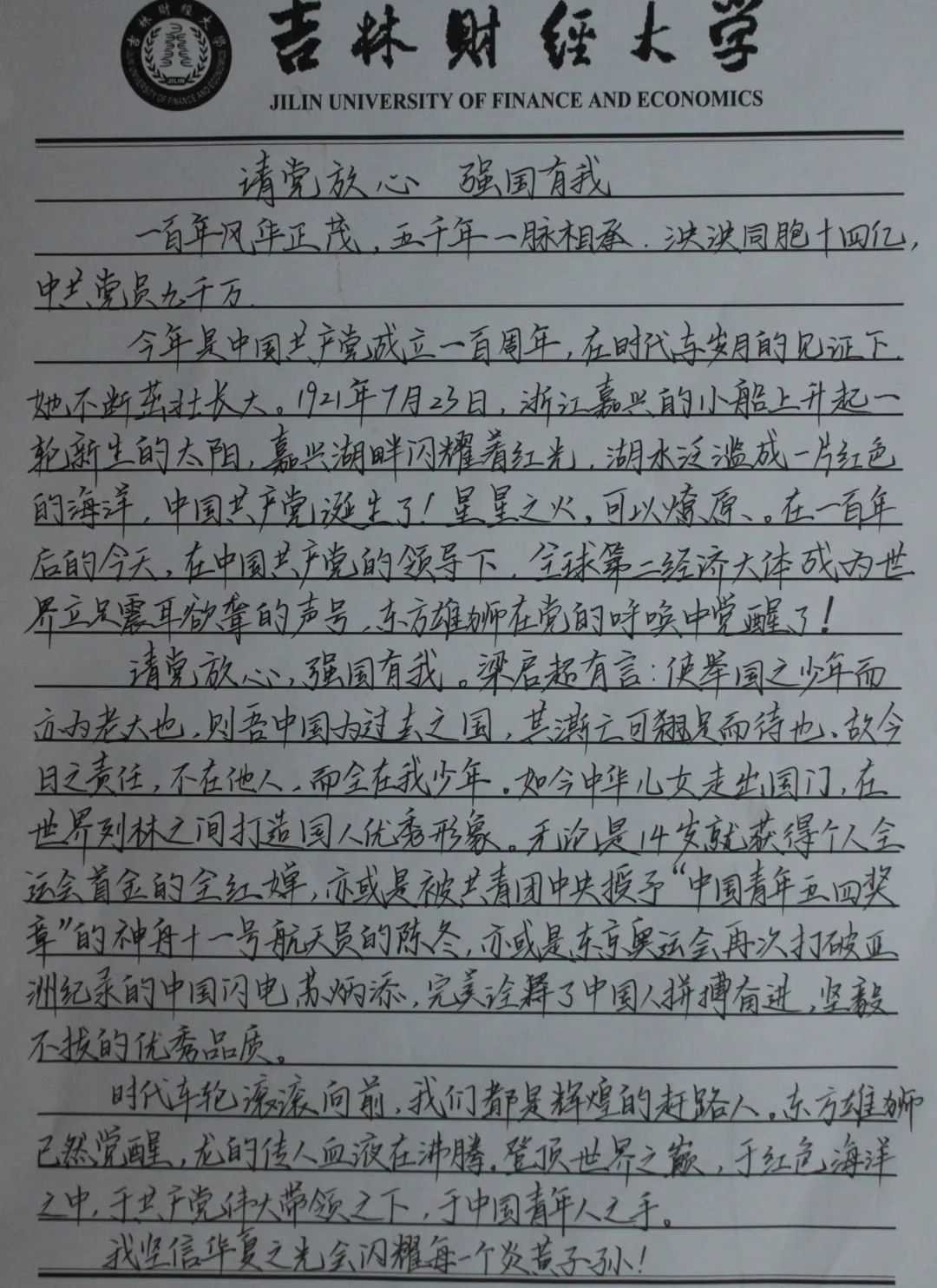 在此次“请党放心,强国有我”主题书画展中,我们还收到了许多作品,但由于数量限制,仅挑取了部分优秀作品展出,希望未展出作品的同学不要气馁,再接再厉。同时也希望在下一次的主题书画展中,能够有更多的同学参与其中各展所长,展现自己的风采!