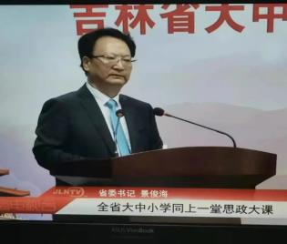 青年兴则国兴,青年强则国强。为让当代学生贯彻落实习近平总书记的思想,充分发挥思政课教师在立德树人方面的重要作用,我今天和学生们一起收看了省委书记景俊海为全省大中小学师生讲授的思政课,切实的让我感受到了我们祖国的繁荣昌盛以及吉林省宏伟前景。