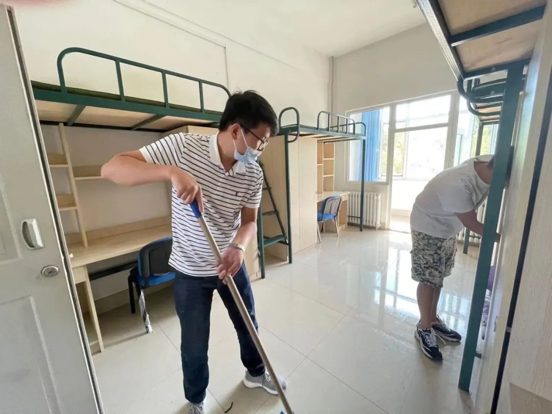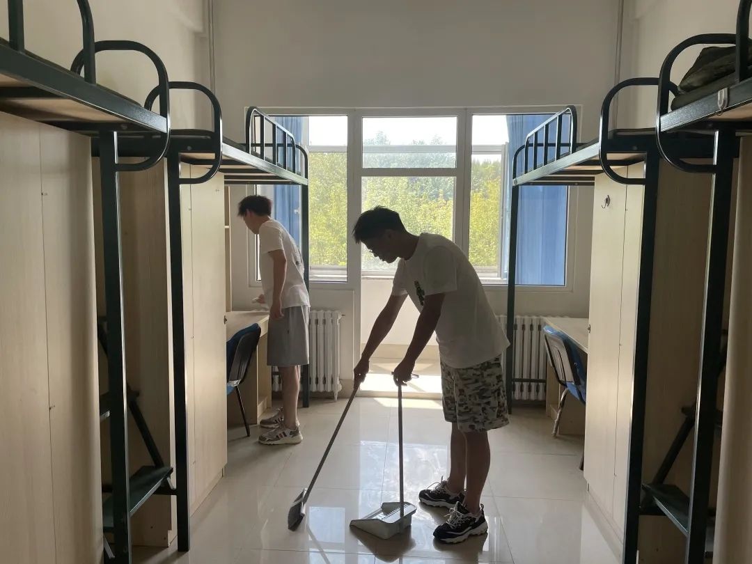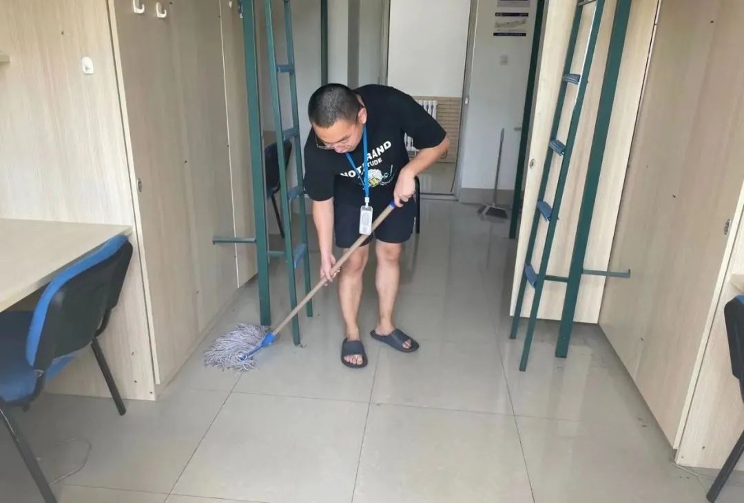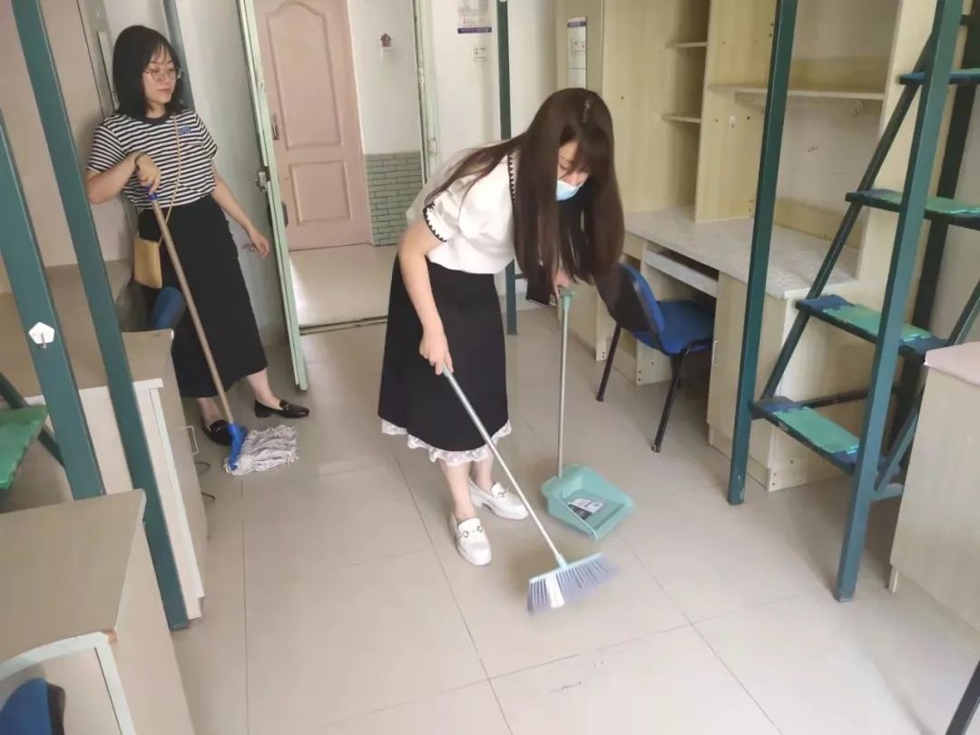 虽然天气炎热,大家汗流浃背,但打扫的热情仍然不减,大家希望通过自己的双手为2021级新生创造一个干净舒适的生活环境。