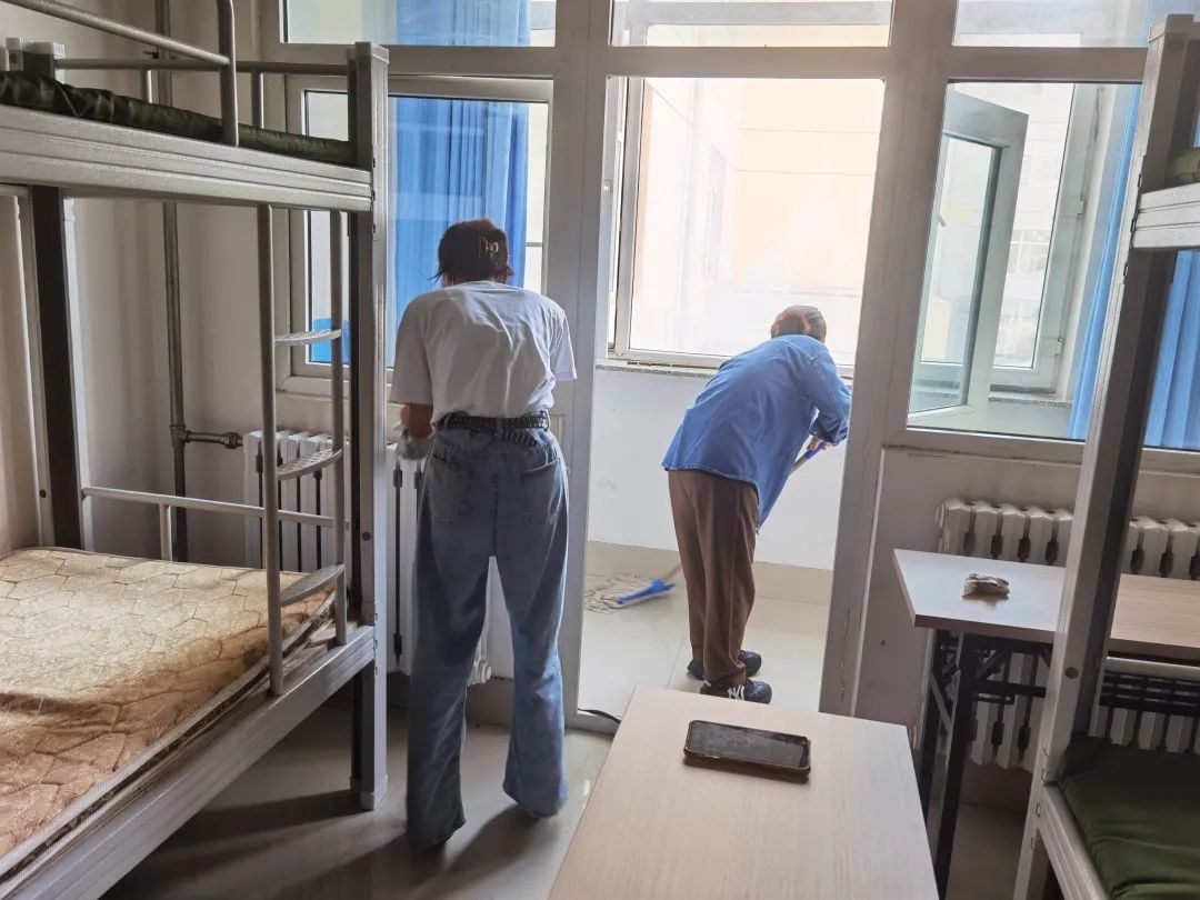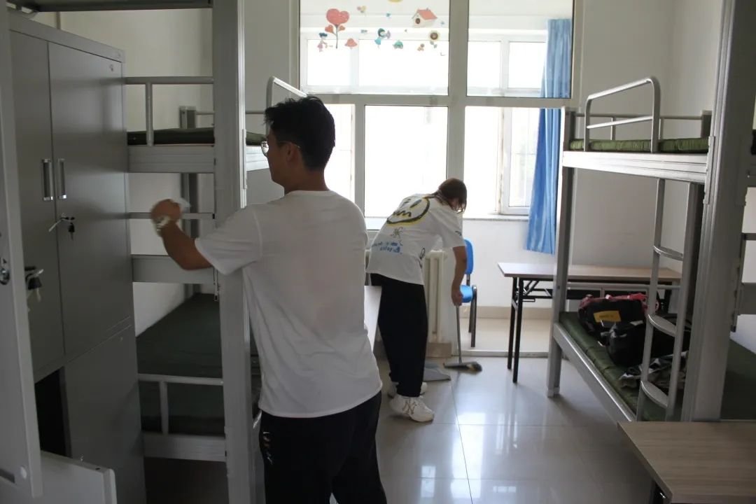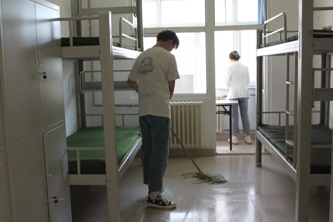 学生志愿者按照所安排的劳动区域,分工协作,积极投身到清洁队伍中。开窗通风、扫地拖地、擦拭桌面柜子,细致地打扫了宿舍的每一个角落。从上至下,从里到外,将书桌擦拭的一尘不染,让宿舍变得更加整洁明亮。