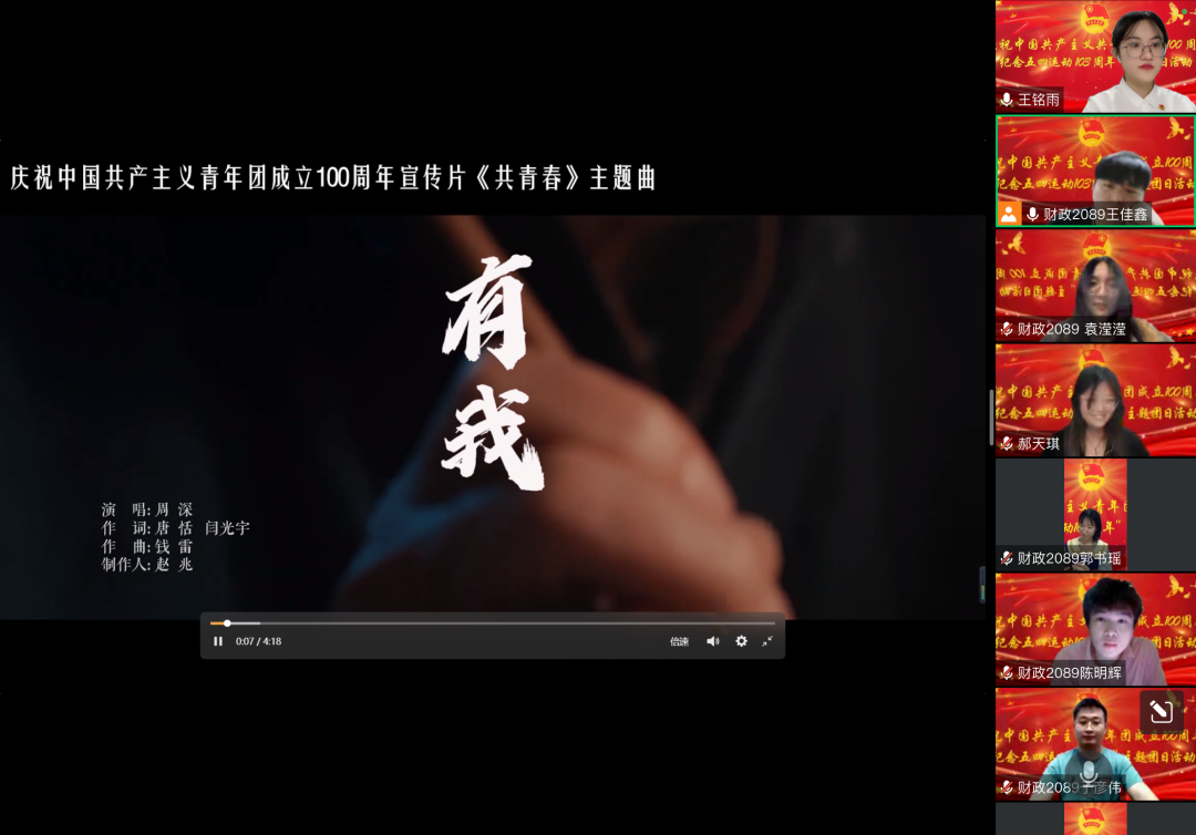 “五四”青年节,由共青团中央出品的《共青春》宣传片和主题曲《有我》官方MV正式上线,天美传媒 各年级团支部纷纷组织观看并学习,共同追忆了中国青年的百年奋斗历程。