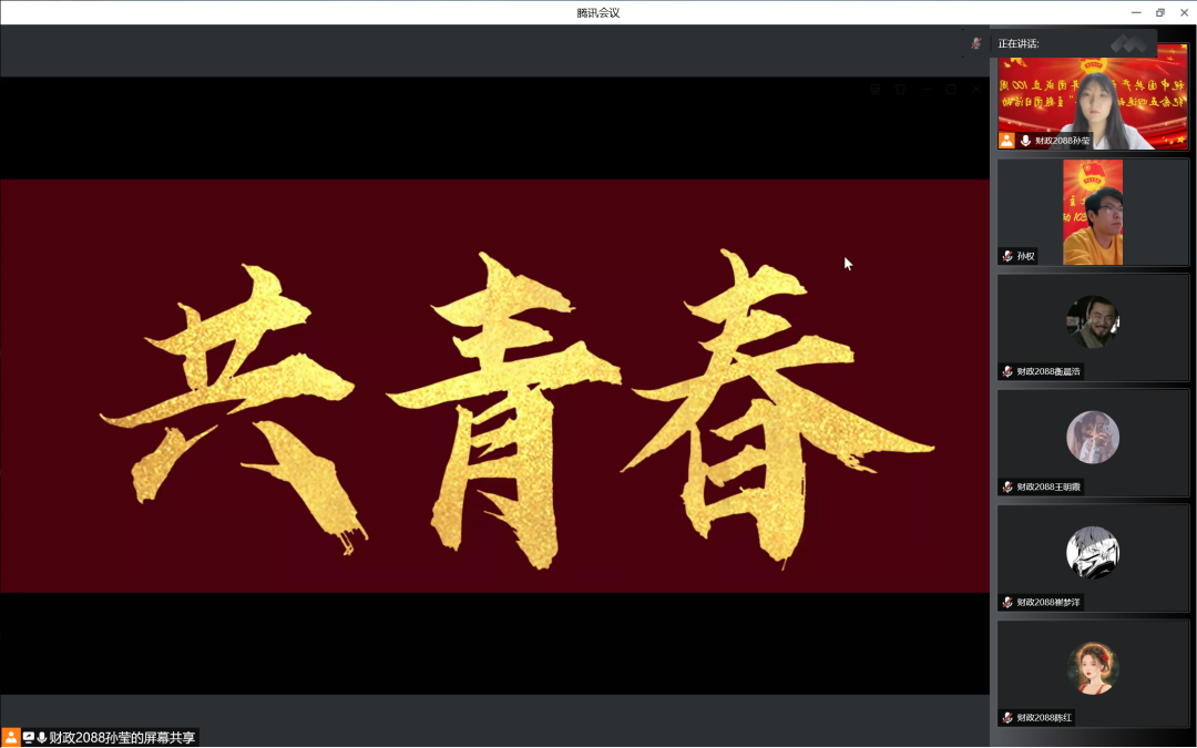 回顾光辉历程,坚定时代信念。历史长河大浪淘沙,送走过多少岁月;时代画卷波澜壮阔,记载了无数英杰。通过线上观看《共青春》宣传片,让我们望岁月峰头、伴历史烟云,回顾了一代又一代青年曾走过的风风雨雨,激发了同学们身为青年的昂扬斗志,点燃了同学们强烈的爱国热情。