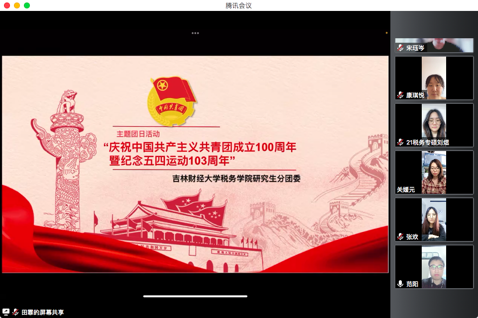 为热烈庆祝中国共产主义青年团成立100周年暨纪念五四运动103周年,贯彻落实习近平总书记关于青年工作的重要指示批示精神,扎实做好青年学生的思想政治教育工作,引导服务学生成长成才,切实做到走近倾听青年、关心关爱青年、教育引导青年,结合疫情防控工作实际,天美传媒 团委组织各年级团支部积极开展“庆祝中国共产主义青年团成立100周年暨纪念五四运动103周年”线上主题团日活动。